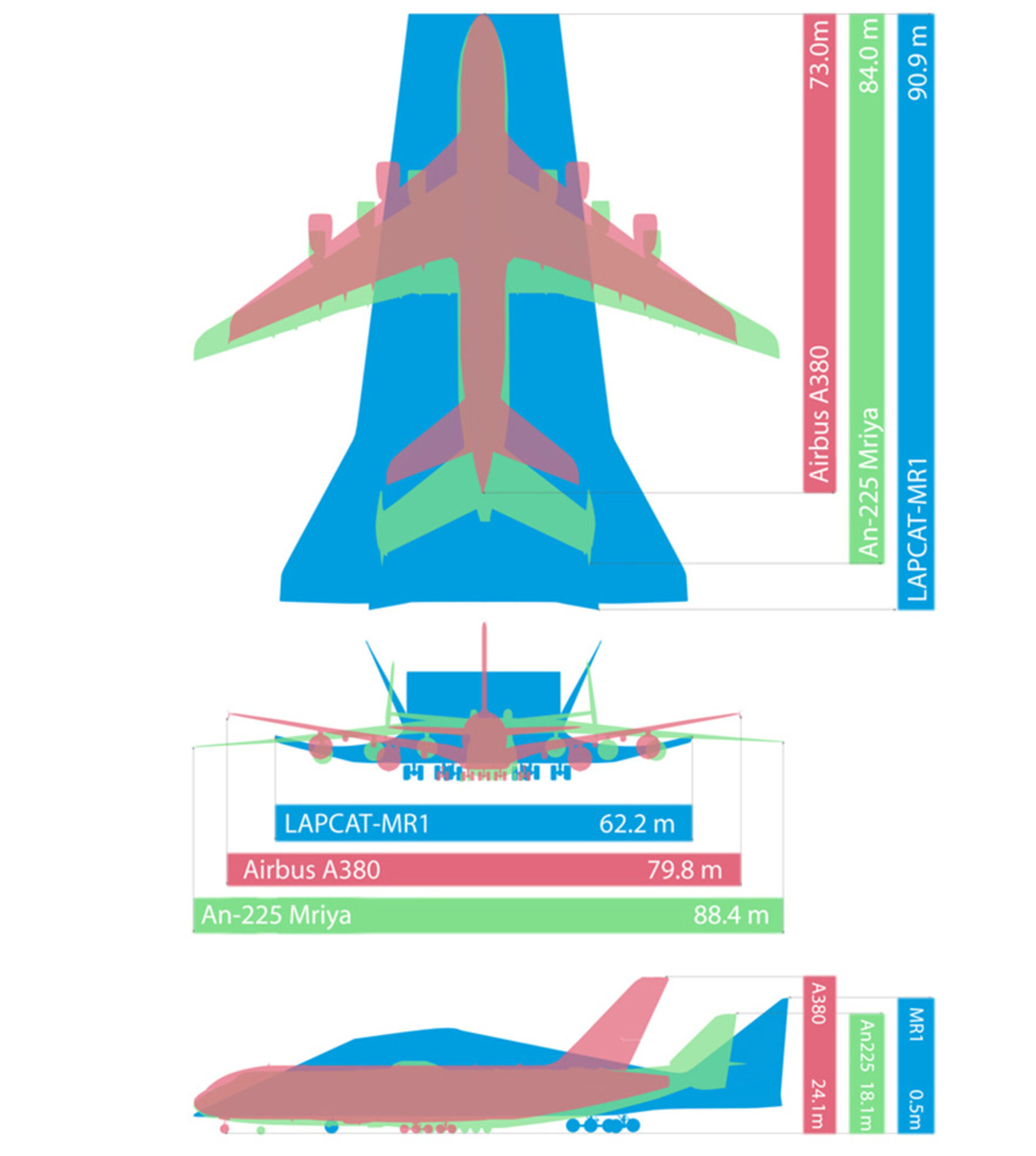 LAPCAT-MR1: Geometrical comparison with the A-380 and An-225.