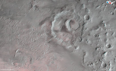 Argyre Planitia and Hooke Crater imaged during revolution 10743 on 8 June 2012 by ESA’s Mars Express using the High-Resolution Stereo Camera (HRSC). Data from HRSC’s nadir channel and one stereo channel are combined to produce this anaglyph 3D image that can be viewed using stereoscopic glasses with red–green or red–blue filters. Centred at around 45°S and 314°E, the image has a ground resolution of about 22 m per pixel.