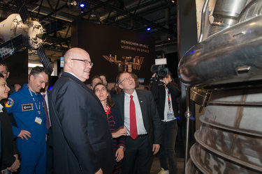 Parlimentarian's Day in the Space Pavilion at the Berlin Air and Space Show, on 25 April 2018.