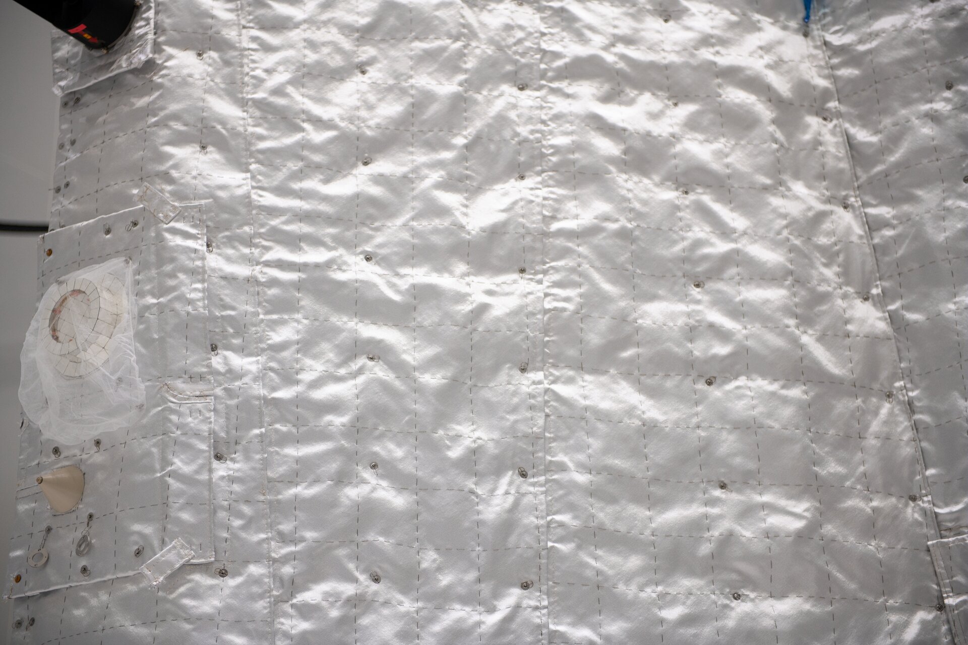 The hand-sewn thermal blanket on ESA’s Mercury Planetary Orbiter (MPO), one of the two science spacecraft of the ESA-JAXA BepiColombo mission, at Europe's Spaceport during launch preparations.