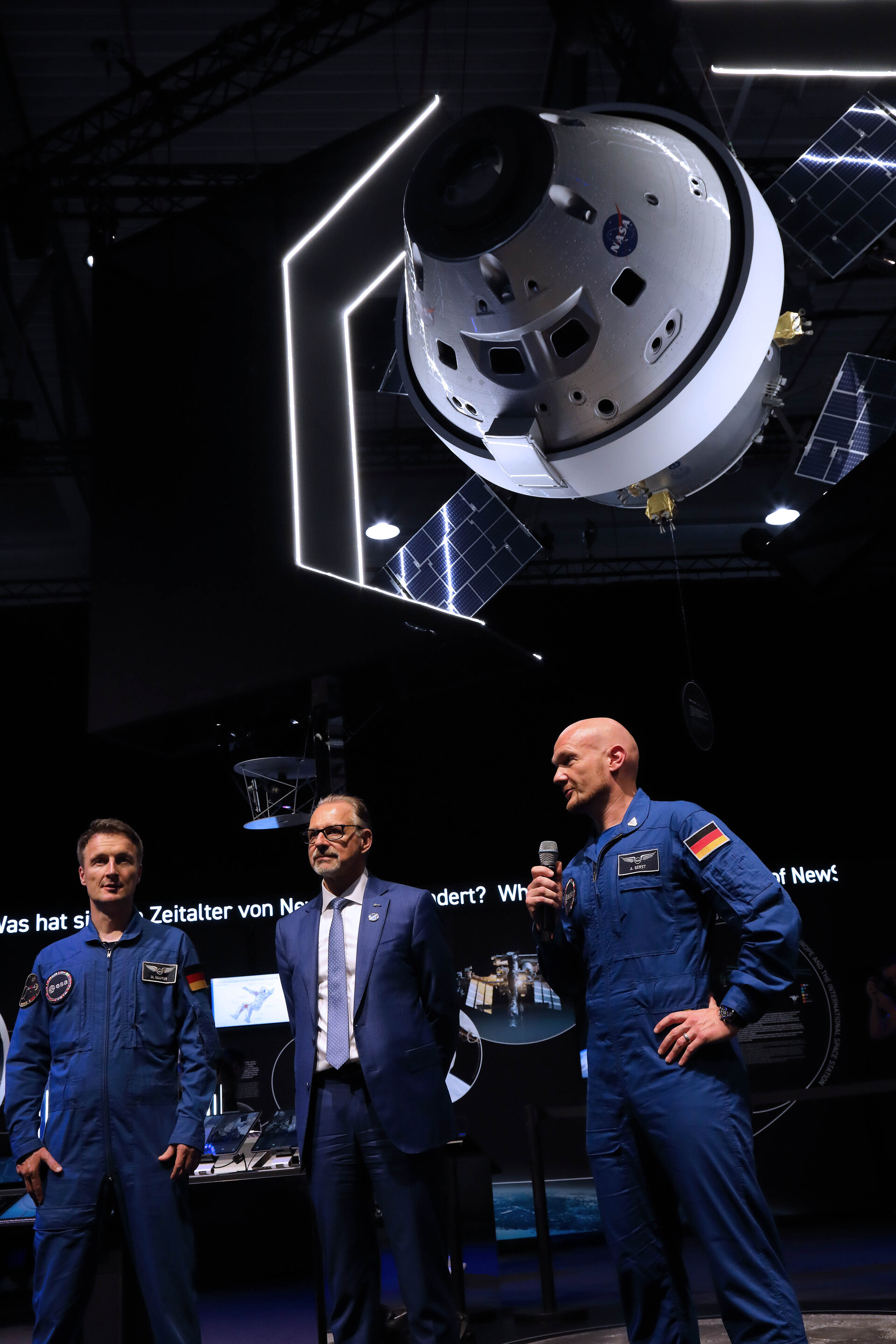 Parliamentarian's Day at the ILA 2024 Berlin Airshow in Germany on 5 June 2024. A group of parliamentarians from Germany, Luxemburg, Norway and Poland hosted by ESA DG Josef Aschbacher and ESA astronauts Alexander Gerst and Matthias s Maurer visit the Space Pavilion at ILA 2024.