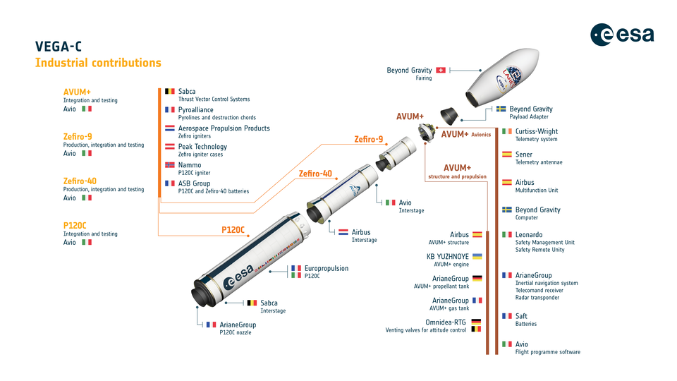 ESA owns the Vega-C programme, working with Avio as prime contractor and design authority. Arianespace is responsible for commercial exploitation of the launch system.