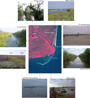 Sf. Gheorghe coastal zone showing different types of environment.