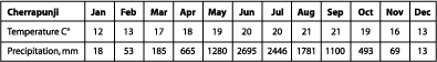 Klimadata for Cherrapunji Grafen herunder viser nedbøren (i månederne juni til oktober) og NDVI for Sohra, som er det lokale navn for Cherrapunji. Generelt korrelerer nedbøren ganske godt med NDVI, men det gælder ikke i Sohras tilfælde ~ man kunne godt kalde det for meget af det gode!