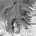 | | | Animation of two ASTER satellite images of the glacier in the ASTER image | Changes in length and area of a glacier can be due to alterations of accumulation and ablation. For example, if ablation increases (usually due to intensified ice melt from atmospheric warming) and accumulation remains stable, the ice flow decreases and the glacier length and area shrinks. On the other hand, if accumulation increases and ablation remains stable, the ice flow intensifies and the glacier grows in length and area. Runoff is the water that comes from melted ice and snow of a glacier, and runs down and away from the glacier. The result is a loss of glacier mass.
