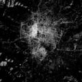 Esto se debe a la fuerte reflexión de las características urbanas en la banda azul 1, que genera zonas claras, y la ligera reflexión de dichas superficies en la banda 4 de infrarrojo cercano, que genera zonas oscuras en la imagen. De la resta de esas dos bandas se obtiene una imagen con características urbanas acentuadas y superficies no desarrolladas absorbidas.  | | | Nueva imagen calculada (sin extender) | Lo probaremos en el ejercicio siguiente y veremos si podemos identificar la zona urbana de Katmandú.