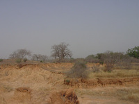 Zelfs als er meer regen zou zijn, is de zanderige grond moeilijk opnieuw te cultiveren. |  | De Sahel - Overgang tussen woestijn en savanne | | Een nog verwoestender bijdrage aan de verwoestijning wordt geleverd door de groeiende bevolking in dit kwetsbare gebied. Moderne technologieën zorgen ervoor dat er diepere, efficiëntere waterputten kunnen worden gemaakt. Zo worden de veeboeren aangemoedigd om steeds meer vee te houden. Dit vee heeft steeds meer weidegrond nodig, zodat de grondwaterspiegel zakt. Struiken en bomen gaan dood en de grond verdroogt. Dan blaast de wind de bodemdeeltjes weg die belangrijk zijn voor de landbouw, waardoor zanderige, rotsachtige grond achterblijft.