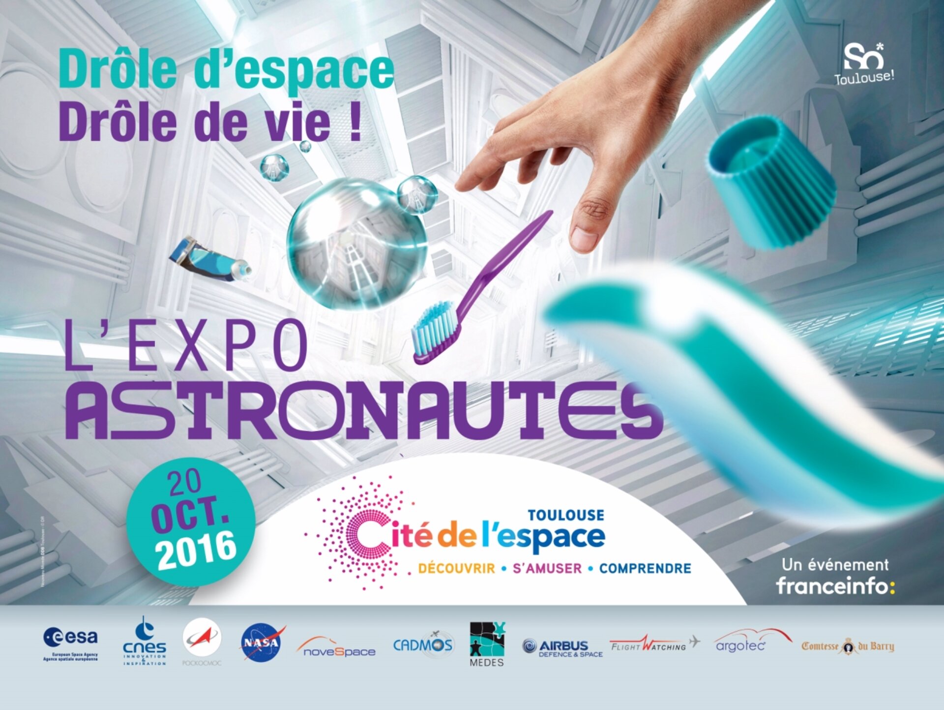 The ‘Astronautes’ exhibition was designed and produced by Cité de l’espace with ESA, France’s CNES space agency, Russia’s Roscosmos, NASA, Novespace, Cadmos, Medes, Airbus Defence & Space, Flight Watching and Argotec.